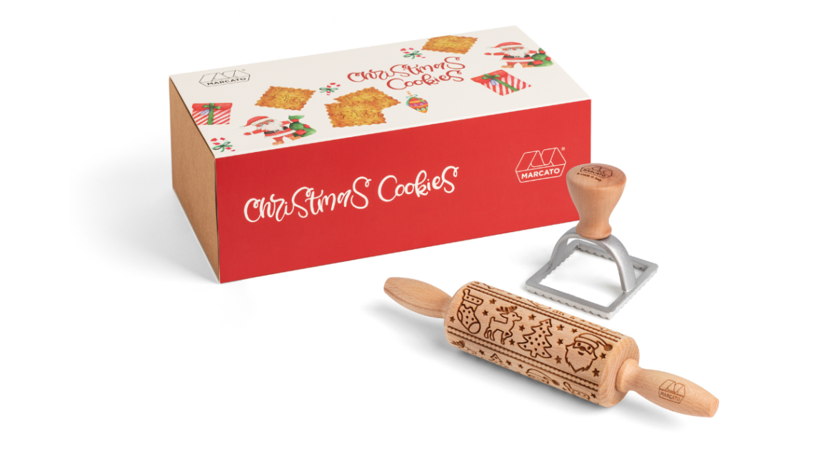 Durante le Feste, è sempre il momento giusto per gustare un biscotto o... appenderlo all’albero! Per realizzare delizie golose in tema natalizio ci sono i set Marcato Christmas Cookies, in quattro versioni diverse. Ognuno comprende la ricetta per l’impasto, le formine per ritagliare i biscotti e un mattarello in legno con motivi a fiocchi di neve, renne, abeti e Babbo Natale. Perfetti per coinvolgere anche i piccoli di casa nella preparazione di fragranti bontà (€ 44,90, marcato.it).