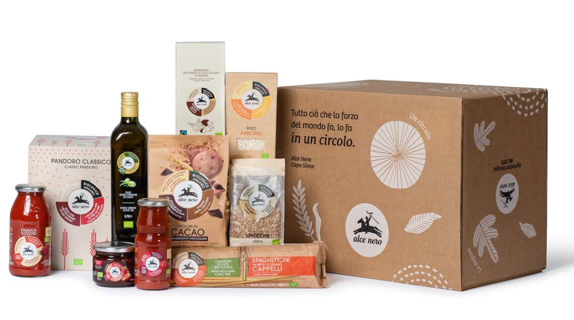Da regalare o regalarsi, le ceste Alce Nero si acquistano online e mescolano dolce e salato, Natale e tradizione, tutto rigorosamente bio. Come la Cesta Gran Natale che, insieme al Pandoro classico, propone passata di pomodoro datterino, riso Arborio, spaghettoni Senatore Cappelli, lenticchie, olio extravergine di oliva, frollini al cacao con gocce di cioccolato, composta di fragole, mandorle ricoperte di cioccolato (€ 53,75, alcenero.com).