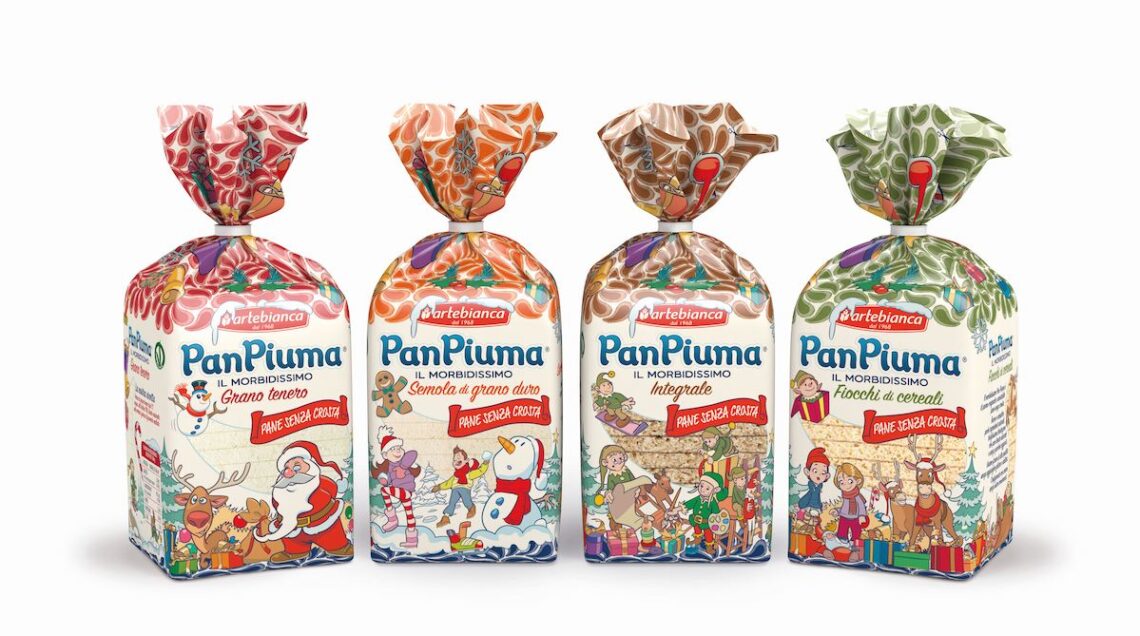 Renne, pacchi regalo, Babbi, bambini e pupazzi di neve popolano l’allegro mondo delle confezioni natalizie Pan Piuma, il soffice pane in cassetta nelle versioni con farina di grano tenero, di grano duro, integrale e con fiocchi di cereali che mescola avena, farro, orzo, segale e semi di girasole. Lunga lievitazione e assenza di coloranti, conservanti e additivi per un pane genuino e naturalmente morbido, ideale per tartine, canapè e cestini croccanti, da sbriciolare nel ripieno dello strudel o gustare, a colazione, con un velo di burro e confettura (info e ricette su panpiuma.it).