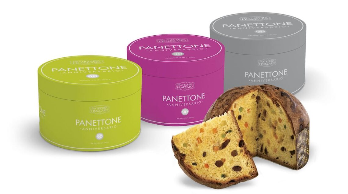 Impastato con il prezioso lievito madre “nato” nel 1932, il Panettone Anniversario di Pasticceria Fraccaro nasce in edizione limitata per celebrare i 90 anni dell’azienda. La ricetta esclusiva utilizza burro delle malghe del Veneto, tenera uvetta australiana, canditi di arancia, uova allevate a terra e farina italiana. Le belle scatole rosa, verde o argento racchiudono gusto, aroma e profumi d’altri tempi (1 chilo, € 43,00, pasticceriafraccaro.shop).