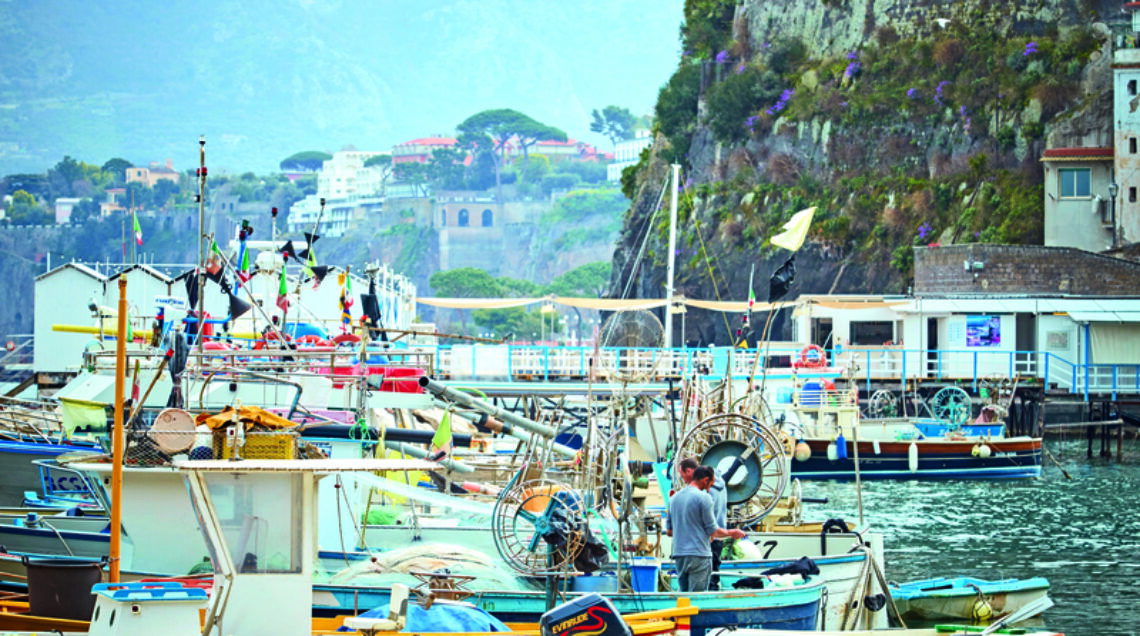 Se invece si vuole continuare a vivere l’emozione della storia, il mito delle sirene e della Belle Époque sorrentina, l’indirizzo giusto per un aperitivo in vista del Vesuvio è il bar Colonna dell’Hotel Lorelei Londres (nella mitologia germanica Lorelei è l’ondina che abitava il fiume Reno), cinque stelle con terrazza a precipizio sul mare e belvedere magnifico, dove si nasconde anche una piccola area relax. All’interno dell’hotel il ristorante capitanato da Ciro Sicignano è una coccola per il palato tra prodotti di stagione e strettamente locali. In barba alla giovane età, il cuoco ha scalato le classifiche dei migliori cucinieri d’Italia e ha fatto della semplicità e del territorio i diktat che regnano ai fornelli. A suo sostegno l’idea secondo la quale “le contaminazioni non fanno per me: alla salsa di soia preferisco una spruzzata di Limone di Sorrento Igp”. La notte si passa all’Hotel Imperial Tramontano. Nella hall si respira il fascino della dimora privata dove arredi e opere d’arte convivono con grande gusto. In una delle sue ali vide la luce Torquato Tasso e vi hanno alloggiato come ospiti Goethe, Byron, Ibsen e teste coronate come la zarina Maria Alexandrovna, Vittorio Emanuele II, la regina Guglielmina d’Olanda per citarne solo alcune. Le stanze migliori sono affacciate sul blu del cielo e del mare e la solare sala delle colazioni è con vista sul borgo colorato dei pescatori di Marina Grande. Lo si raggiunge l’indomani, dopo uno sguardo al Chiostro di San Francesco. Indimenticato scenario di Pane, amore e… con protagonista la smargiassa Sophia Loren, venerata come una santa dopo aver girato con Vittorio De Sica il film diretto da Dino Risi. Il silenzio e gli abitanti del villaggio, pescatori e osti, danno l’impressione che nulla sia cambiato dal tempo della pellicola del 1955. È rimasta come quando venne fondata nel 1947 anche la Trattoria Da Emilia, dove la possanza di Irene Cacace è il rassicurante biglietto da visita per piatti saporiti e genuini. Qui ci si ferma, les pieds dans l’eau, anche fuori orario per un memorabile assaggio di fritto di paranza o una strepitosa grigliata di pesce.