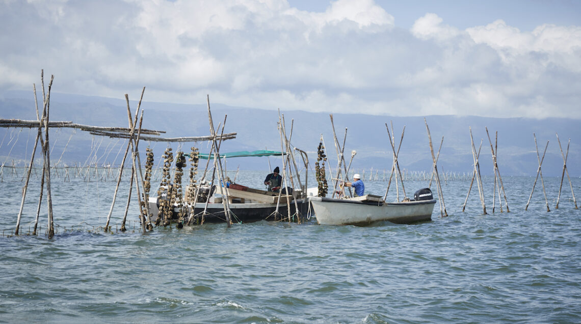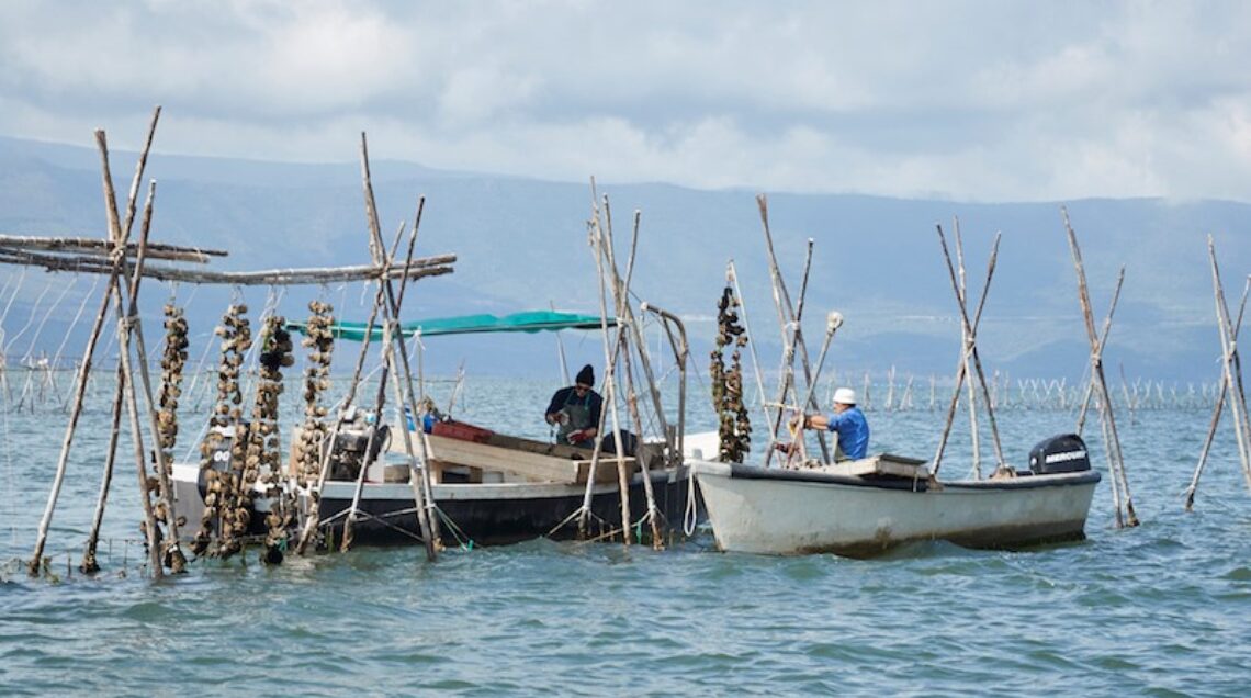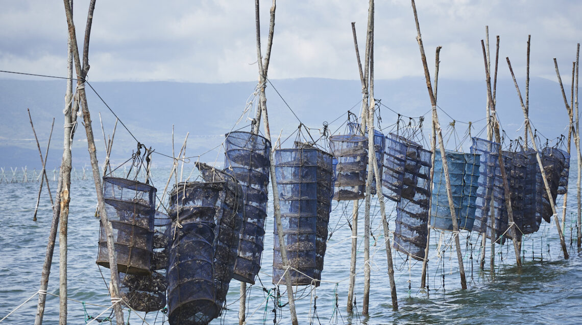 Partiamo dal lago di Varano, in realtà una laguna salmastra che si estende da Capoiale a Ischitella, nel foggiano, separata dal mare da una sottile striscia di terra. Qui le ostriche sono allevate con due tecniche: su corde o in ceste.