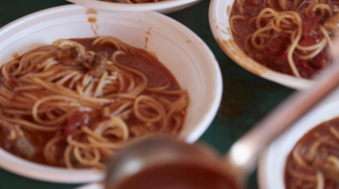 Pesce freschissimo e salsa densa: accoppiata vincente per spaghetti semplici ma strepitosi. Un pranzo perfetto per l’equipaggio del Nuovo Kondor e per la troupe di Sale&Pepe!