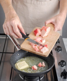 Sciogliete 80 g di burro in un tegame, unite 100 g di midollo di manzo a pezzi e fatelo disfare.