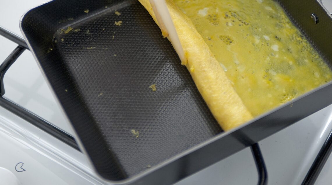 I giapponesi preferiscono le uova crude; un uovo sgusciato in una ciotola di riso caldo, leggermente strapazzato, è la scelta più popolare per la colazione. Sukiyaki e shabu-shabu – tra i piatti più diffusi – vengono serviti con una salsa a base di uova sbattute. Carni o pollame vengono passati nell’uovo prima di essere ricoperti con briciole di panko (il pangrattato giapponese). Uno dei piatti più popolari è il tamago roll o tamagoyaki (foto sopra), una frittata sia in versione salata sia dolce, fatta con strati di uova arrotolati l'uno sull'altro fino a diventare un runico rotolo, in una speciale padella rettangolare chiamata makiyakinabe (foto sotto). Generalmente consumato a colazione, il tamago roll molto spesso viene incluso anche nel tipico bento (il contenitore ermetico dove i giapponesi mettono il loro pranzo per portarlo in ufficio). La ricetta prevede, oltre alle uova, mirin (liquore di riso), salsa di soia, zucchero e spezie a piacere. Se viene aggiunto anche il dashi, tipico brodo di pesce giapponese, il piatto si chiamerà dashimaki.