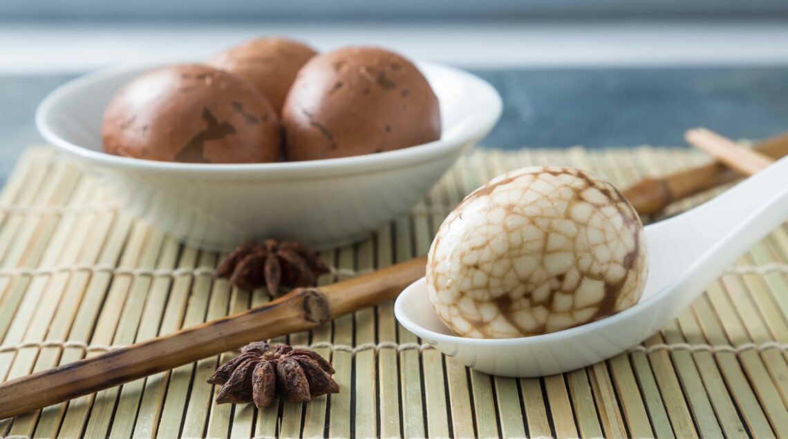 La Cina produce 466 miliardi di uova di gallina all'anno (il 34% della produzione mondiale, dati 2018). Produce inoltre 5,5 milioni di tonnellate di uova di anatra: dopo secoli, i piatti a base di anatra rimangono l'orgoglio della cucina cinese. La Cina detiene anche il record del consumo annuo di uova con 333 uova a persona. Le uova sono una componente vitale della dieta cinese quotidiana: striscioline di frittata vengono usate come guarnizione nei piatti; uova vengono incorporate direttamente in zuppe e brodi come l’Egg Drop Soup (foto in alto), dove uova sbattute vengono colate in un brodo bollente di pollo (anche d’altro tipo), a cui si aggiungono tofu, scalogno e olio di sesamo, e verdure come piselli e pomodori. Comune street food sono le Tea Egg (foto subito sopra): uova bollite nel tè nero con salsa di soia e spezie come anice, cannella, chiodi di garofano, finocchio e pepe, che aggiungono una nota di unami a un normale uovo sodo.