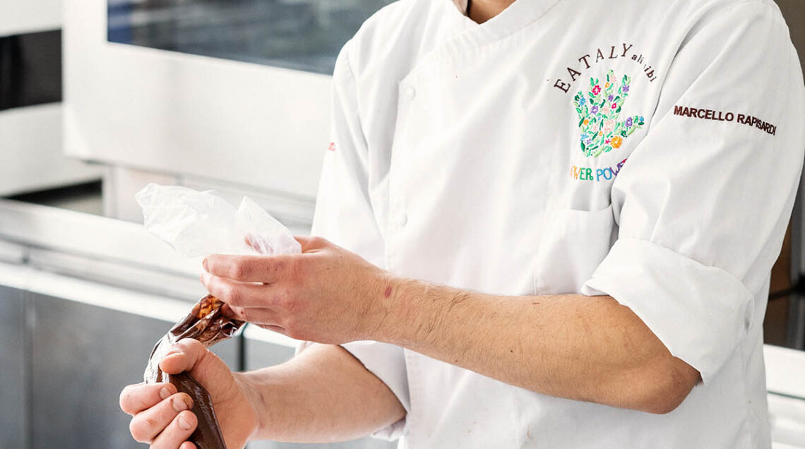 Nella sua pasticceria milanese, Marcello Rapisardi interpreta la tradizione con ingredienti nuovi e ricercati e sensibilità moderna. Torte e cioccolatini tradizionali ma anche ingredienti come yuzu, ylan-ylang, plancton...