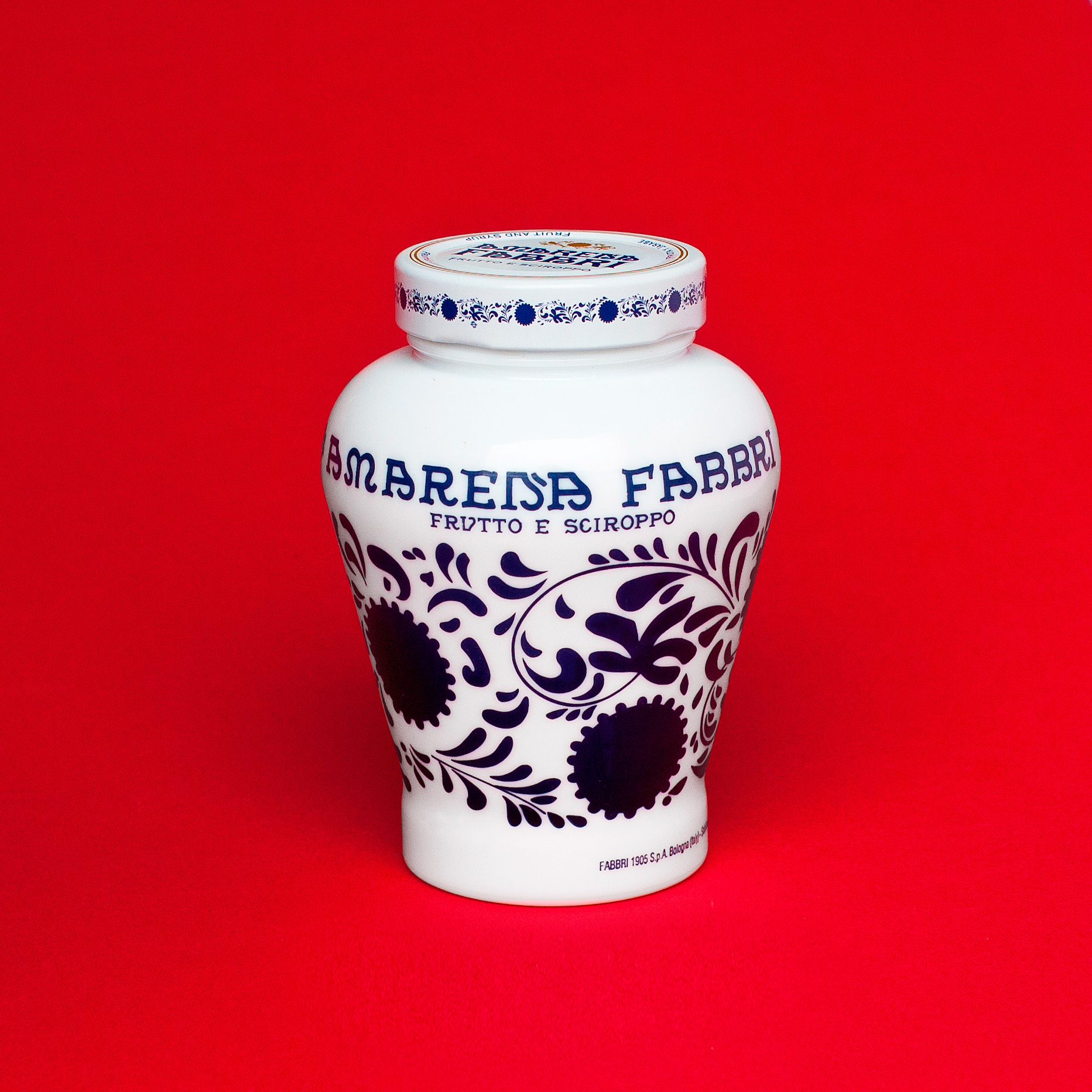 Era invece il 1915 quando Gennaro Fabbri commissionò al ceramista faentino Gatti un vaso bianco e blu affinché la moglie, Donna Rachele, potesse conservare le sue “marene con frutto”. In un mondo invaso dalle confezioni di plastica, dove ci può salvare solo il ritorno allo sfuso o la plastica-non plastica del domani, la confezione delle amarene Fabbri è memoria e simbolo del gusto italiano, non solo a livello di cibo. Il vasetto opaline bianco e blu dell’azienda bolognese contiene le rosse lucide amarene – esse stesse icona di design! - preparate con la stessa ricetta di allora, custodita gelosamente dagli eredi Fabbri.