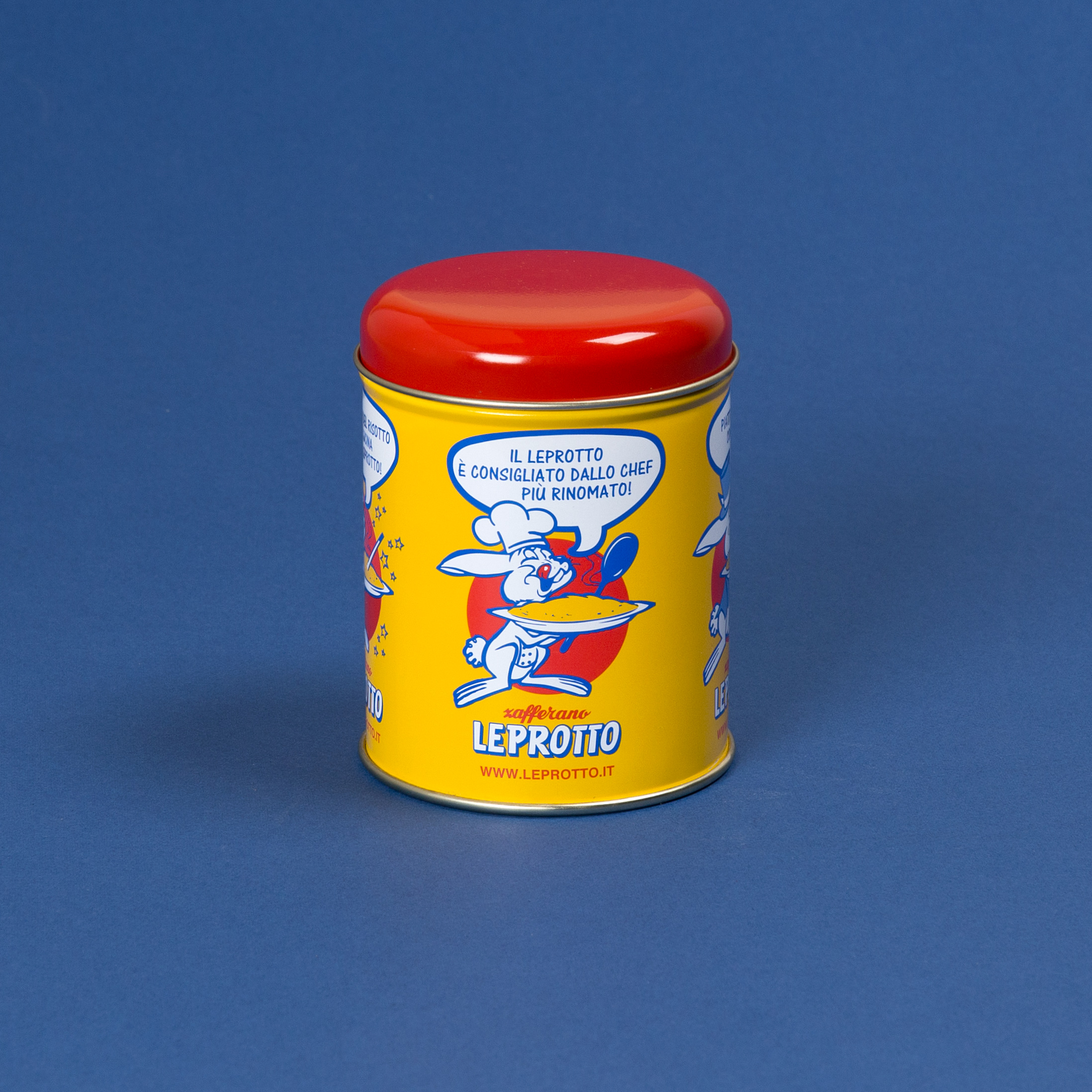 Il gioioso barattolino cilindrico in metallo giallo-oro col tappo bombato rosso e l’immagine di una lepre che serve un piatto di risotto allo zafferano è dal 1963 il marchio dello zafferano Leprotto. Al MoMA è in vendita in limited edition con dentro 4 bustine ricche di zafferano (ben 0,16 grammi di polvere purissima) e un libretto con ricette e proprietà nutrizionali del prezioso “oro rosso”.