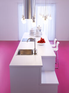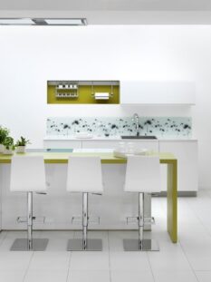 Ergonomiche, su misura e attente all’aspetto economico e ambientale le cucine presentate da Schmidt. Come il modello “Fresh”, dalle linee moderne ed essenziali con le ante laccate bianche, lisce e senza maniglie, che propone piani di lavoro all’altezza ideale per chi cucina, senza sovraccaricare la schiena (92 cm). L’altezza è regolabile al millimetro e quindi personalizzabile, giocando sullo spessore del piano e l’altezza degli zoccoli.