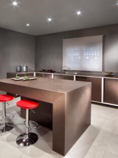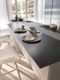 Superfici innovative e high-tech anche quelle presentate dal Gruppo Cosentino: una su tutte la finitura Dekton®, ultracompatta e sofisticata miscela di materie prime inorganiche. Resistente a graffi, abrasioni, macchie, raggi UV è già stata adottata da importanti produttori di cucine.