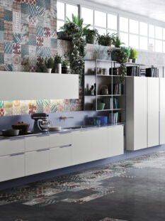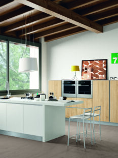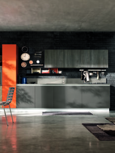 Sensibile agli aspetti tecnologici è sicuramente “Orange Evolution”, design Michele Marcon per Snaidero che, accanto alle texture materiche abbinate a laminati dalle nuove cromie, integra l’innovativo sistema domotico “Touch Kitchen”. Grazie a una facile applicazione su tablet o smartphone sarà possibile controllare consumi energetici, temperatura, cattivi odori, fughe di gas e anche fare la spesa online.