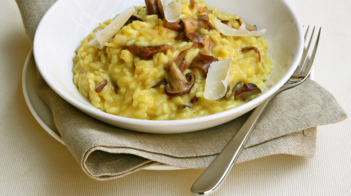 Il classico risotto allo zafferano si insaporisce grazie al sapore prelibato dei funghi in questa semplice ricetta. Assolutamente da provare