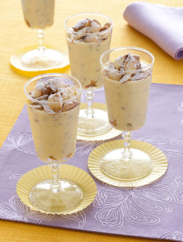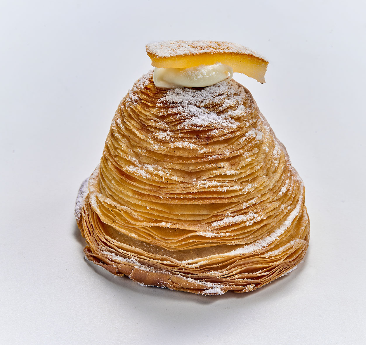 Di Costanzo predilige l’uso della ricotta di pecora, che amalgamata agli altri ingredienti della tradizione, crea una farcia leggera come una mousse, dal sapore delicato. Il segreto però sta nell’aggiunta di un tocco di crema pasticcera alla farcia.