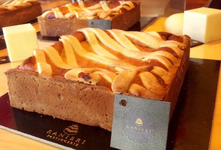 Per la pastiera della Pasticceria Ranieri (varie sedi: Napoli zona Vomero e Pozzuoli), si è optato per una forma quadrata invece della classica rotonda. Gianluca Ranieri, art creator della pasticceria omonima, ha voluto stravolgere la tradizionale forma del dolce tipico della Pasqua napoletana, incontrando i consensi della sua clientela. Un tocco contemporaneo per quella che nella sostanza è una preparazione che segue la tradizione, anche se è stato aggiunto all’impasto un ingrediente “segreto” non presente nella ricetta originale. Pare ci siano volute circa 27 prove prima di raggiungere il risultato desiderato. Ed ecco svelato l’arcano del numero 27 posto in un angolo della Pastiera 27 square version.