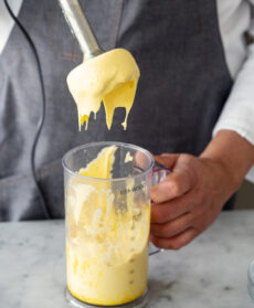 Mettete nel bicchiere da mixer la patata a pezzi, la scorza di limone, i tuorli, 60 g di olio e frullate per ottenere una maionese soda; regolate di sale. Scartate petti e filetti, versate nella padella il sughetto che si è formato e fatelo ridurre a fuoco vivo. Affettate i petti e serviteli con i filetti, la maionese, i ravanelli affettati e il sughetto della carne.