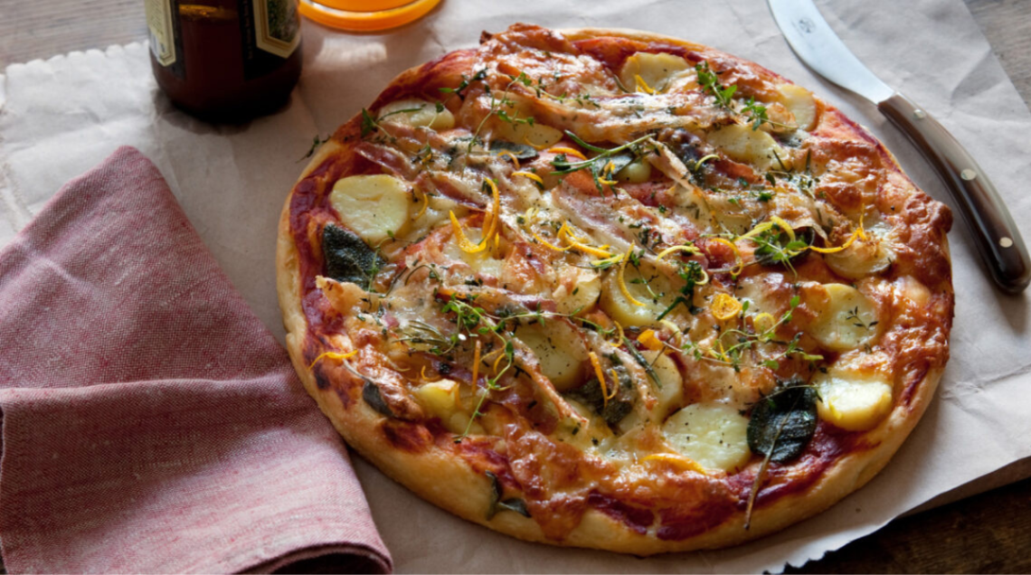 Salsa di pomodoro, patate e un mix di erbe aromatiche completano la pizza rustica alla pancetta: ecco qui la ricetta con tutti i passaggi.