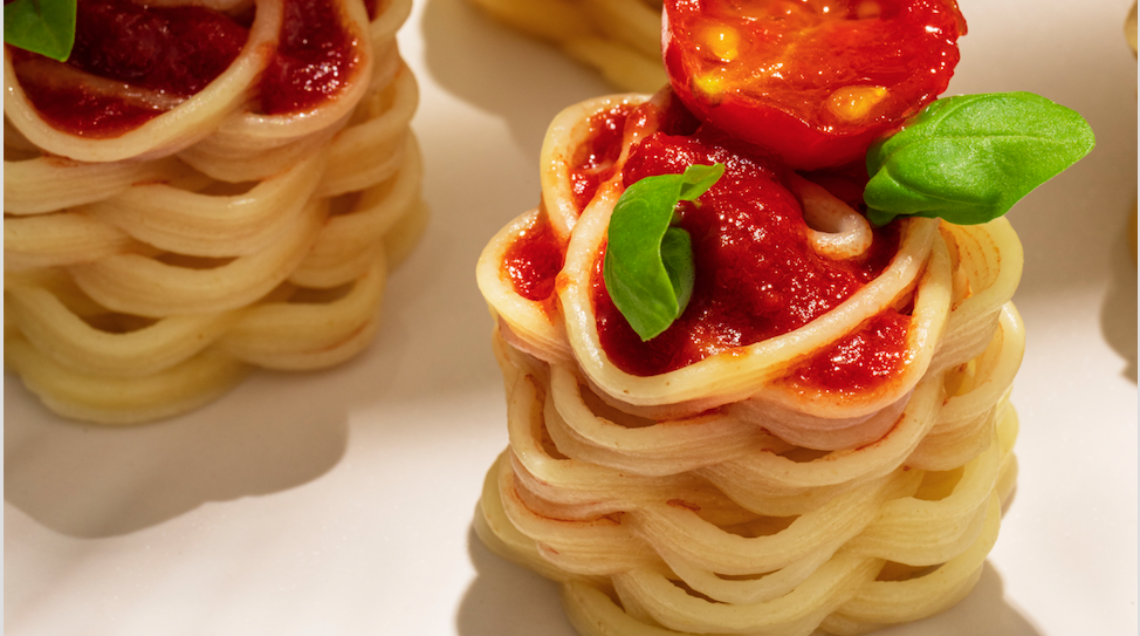 Grani pregiati, certo, secondo la tradizione. E anche un corretto bilanciamento degli ingredienti. Ma niente torchi o trafile in bronzo per formati di pasta usciti dalle menti (e dalle braccia) di BluRhapsody, società del venture capital di Barilla Blu 1877. La pasta griffata BluRhapsody, infatti, esce da una stampante 3d che crea geometrie uniche, esclusive e, perché no, personalizzabili. “Abbiamo pensato ad un mondo in cui la pasta può assumere formati straordinari, ispirando la creazione di piatti originali e ricercati. Oggi la pasta 3D non è più il futuro, ma il presente. “ spiega Antonio Gagliardi, che dal 2017 progetta gli algoritmi necessari a creare la pasta BluRhapsody (e i suoi formati brevettati, perché questo è un progetto unico al mondo).