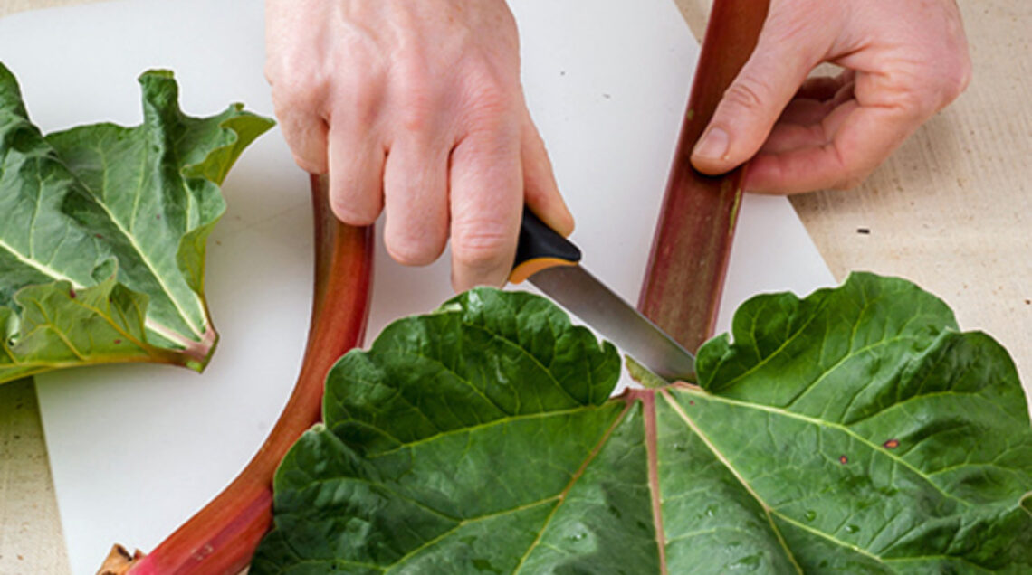 Come pulirlo Per pulire il rabarbaro, eliminate la base e le foglie da ciascuna costola.