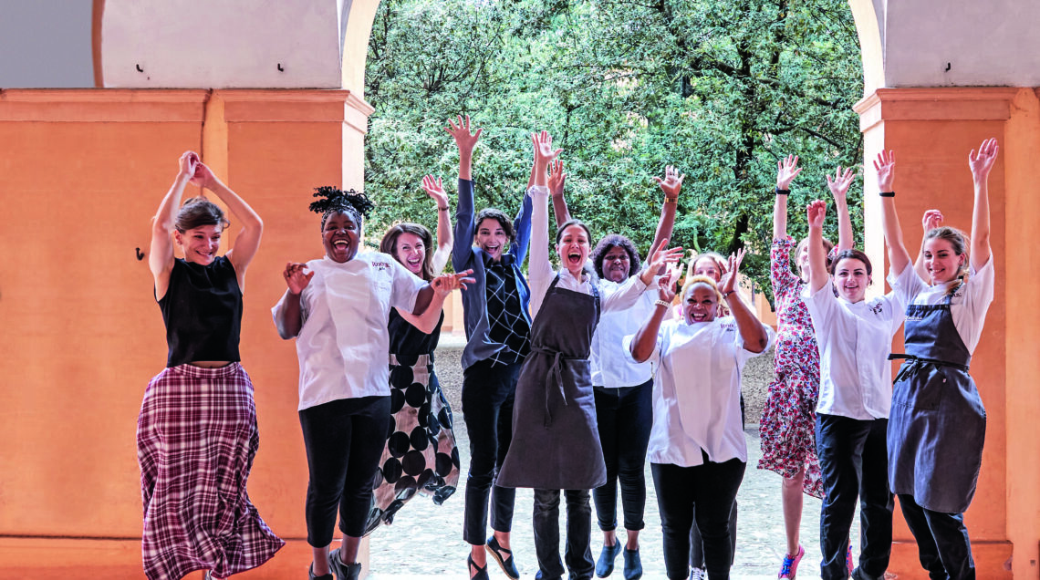 Situato in un ex monastero di origine medievale a Modena, aperto da circa un anno, il ristorante (con spazio di co-working) Roots è parte fondamentale di un programma concepito nel 2020 e portato avanti da giovani donne che insieme a Caroline e Jessica, con la stessa passione ed energia, hanno dato vita a un modello virtuoso di solidarietà che impatta positivamente sulla comunità. Coadiuvate nella selezione dai centri sociali, scelgono poche tirocinanti alla volta (qui ci sono Arjola, Kate e Juliet) per un programma di formazione culinaria professionale retribuito di 4 mesi – curato da Jessica, direttrice culinaria – che vuol dare alle ragazze sia le competenze tecniche, sia un supporto concreto all'integrazione per gestire anche il lato burocratico. Le ragazze, che devono già parlare un italiano sufficiente a farle comunicare con colleghi e clienti, imparano a muoversi in una cucina professionale. Propongono a Jessica i piatti della loro cultura gastronomica e insieme a lei preparano un menu unico di 7 piatti etnici che verranno serviti al ristorante per tutto il periodo del loro tirocinio. Il ristorante è aperto solo la sera e i piatti che arrivano al tavolo sono da condividere tra i commensali, per sottolineare l'atmosfera di accoglienza e condivisione al cuore del progetto.