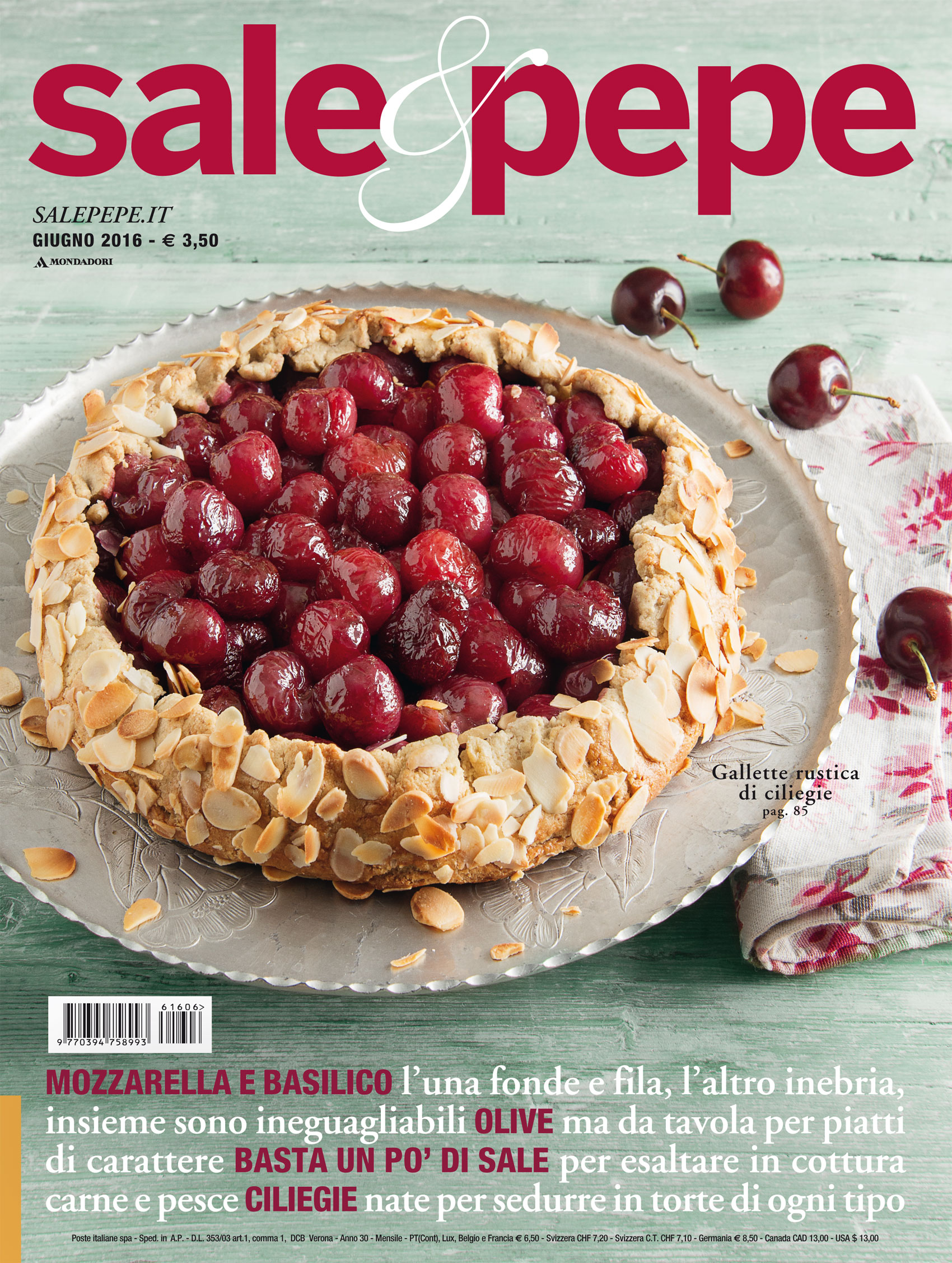 Dal 20 maggio 2016 è in edicola la nuova edizione di Sale&Pepe con tante idee per seducenti torte di ciliegie, piatti di carattere a base di olive, binomi intriganti tra mozzarella e basilico