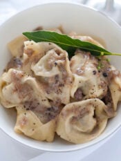 Colta alla sprovvista la Dorina non si perse d’animo, aprì il frigo e come spesso accade a chi ha dimestichezza con il cucinare decise che avrebbe “moltiplicato” il suo pesto. Vi aggiunse altrettanta ricotta piemontese, un ciuffo di prezzemolo tritato, un bel po’ di olive nere tagliuzzate e un filo d’olio per rendere il condimento più fluido. La ricetta entrò nel suo repertorio come pesto “allargato” e ogni tanto ce la ripropose.