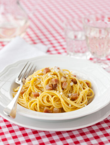 Continuando con l'elenco dei "tarocchi" tipici dobbiamo evitare gli spaghetti alla carbonara con prosciutto cotto e formaggio grattugiato. La vera carbonara si prepara con guanciale e pecorino romano.