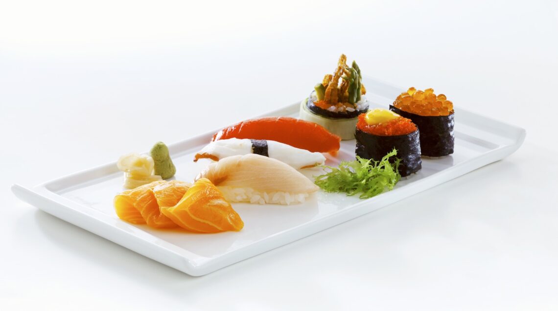3) La degustazione. Come in un plateau di formaggi italiani, deve avvenire dal gusto più delicato a quello più deciso e piccante. Si comincia quindi con platessa o seppia, si continua con tonno e aringa, si conclude con anguille, sgombro, uova di pesce, riccio di mare.