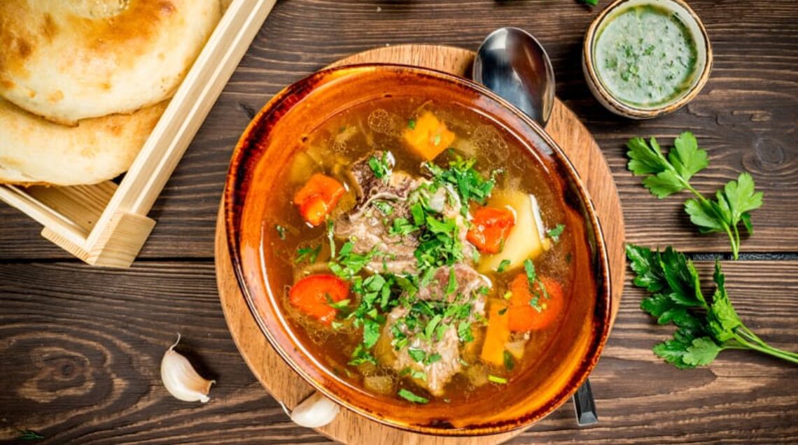 Una parola universale per definire ogni tipo di zuppa. Si possono richiedere i manti in brodo o in shorpa e spesso non è leggera come i nostri consommé, ma si tratta di un piatto unico, con all'interno tanta carne cotta lentamente. Il modo migliore per riscaldarsi nel freddo inverno delle steppe. E ovviamente la troverete sempre molto speziata.