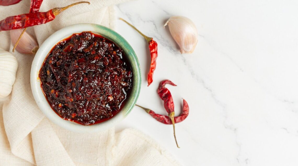 Altro tipico accompagnamento delle pietanze cinesi, nella sua versione tradizionale l’hot chili oil è preparato versando, sopra una dose generosa di peperoncino secco in fiocchi, un olio bollente, aromatizzato con verdure odorose e spezie (cipollotto, aglio, zenzero, anice stellato, eccetera). A volte completato da semi di sesamo, si utilizza in dosi minime, almeno per noi occidentali! Può insaporire zuppe, tofu, carne e pesce in cottura, oppure essere aggiunto a piacimento al momento di gustare i piatti, un po’ come il nostro olio al peperoncino.