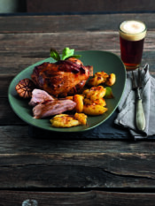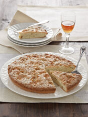 15 Infornate a 160° per 50 minuti circa, fino a raggiungere i 93° al cuore. Sfornate il panettone, infilzatelo alla base con due ferri da maglia o spiedi in metallo e capovolgetelo velocemente.