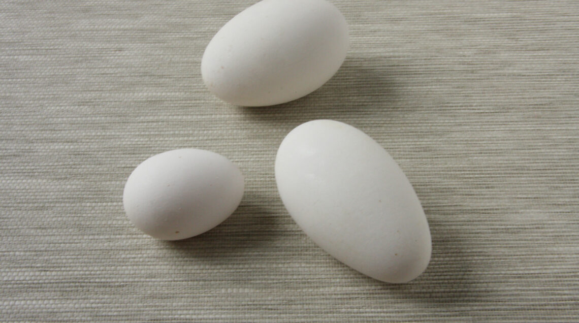 Sono caratterizzate da un guscio bianchissimo di forma allungata, molto resistente e duro: per romperlo, tenete l’uovo in orizzontale e battetelo al centro con un cucchiaio di taglio. Hanno un diametro che è il doppio rispetto alle uova di gallina di “taglia L” e possono pesare anche 180-200 g. Rispetto alle uova di gallina, dove l’albume rappresenta circa il 66% del totale, quelle d’oca hanno un tuorlo più voluminoso e di consistenza densa. La dimensione notevole del tuorlo rende queste uova particolarmente adatte a ricette in cui si utilizza prevalentemente questa parte dell’uovo, come la pasta fresca, la creme brûlée e le varie tipologie di budino. Sono ottime anche strapazzate, sode o fritte.