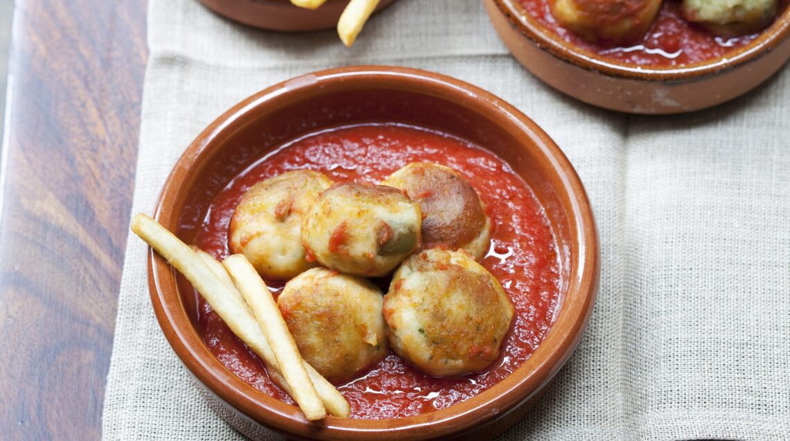 Bacalao andaluso Tra le più gettonate troviamo albondigas (polpettine, crocchette), tipicamente di prosciutto ma anche con funghi, granseole, calamari, gamberi, baccalà o formaggio; olive (aceitunas) speziate, sottaceto o ripiene acciughe o peperoni, bacalao (merluzzo saltato servito con salsa di pomodoro e pane tostato), i calamari all’andalusa (calamaros fritos) tagliati ad anelli e fritti, le patatas bravas (patate in salsa piccante), il polpo alla galiziana, per citarne solo alcune.