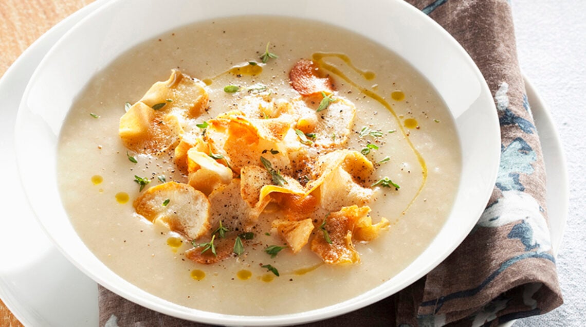 Una ricetta facile da preparare, che porta in tavola il raffinato topinambur in una gustosa vellutata con il cardo