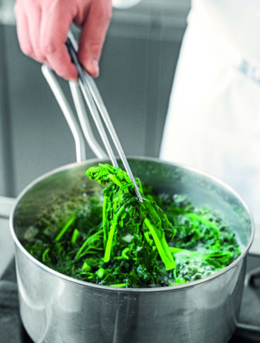 Crespelle delicate, condite con un ragù di stagione, a base di cardi e prosciutto. Raspadura e nocciole aggiungono un sapore gentile