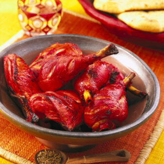 Le American IPA mediano perfettamente con cibo vietnamita, sapori di aglio ed erba, qualunque cosa con ketchup; bilanciano gli anelli di cipolla fritti, i cheeseburger, arancini, i bastoncini di pollo impanati. Esaltano BBQ, cibo messicano e torta di carote. Le Double IPA sono birre importanti, ma la loro dolcezza aiuta a bilanciare spezie, grassi e piccantezza, quindi bene con pollo fritto, hot wings (foto sotto), guanciale, costine, formaggi importanti, torta al cioccolato. No insalate e piatti leggeri.