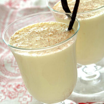C’è chi paragona l’eggnog al liquore Vov oppure allo zabaione nostrano: la preparazione e alcuni ingredienti sono affini ma le similitudini finiscono qui. A vederlo servito in un boccale di vetro o una tazza decorati per Natale – un classico in molti film anglosassoni che si svolgono durante le Feste - potrebbe ricordarli, ma l’eggnog è differente, il gusto particolare. La ricetta tradizionale vuole latte, panna, zucchero, uova sbattute, spezie e alcol – a meno che non sia destinato ai bambini. Mentre l‘eggnog viene spesso servito freddo, in alcuni casi viene riscaldato, soprattutto nelle giornate più fredde.