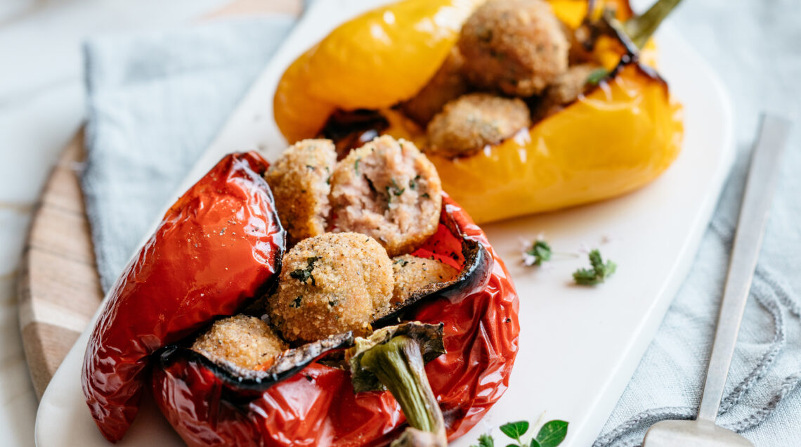 Peperoni al forno ripieni di polpettine