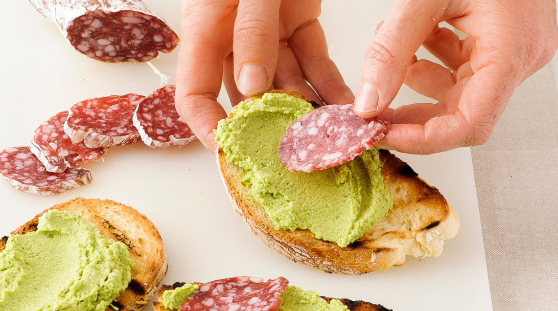 La dolcezza dei legumi freschi sposa l'intensità del salume. Insieme a un buon rosso diventano la merenda rustica più ghiotta della stagione. Dalle tortine alle bruschette, dalle polpette al risotto, la classicissima accoppiata di primavera si presta a tantissime interpretazioni.