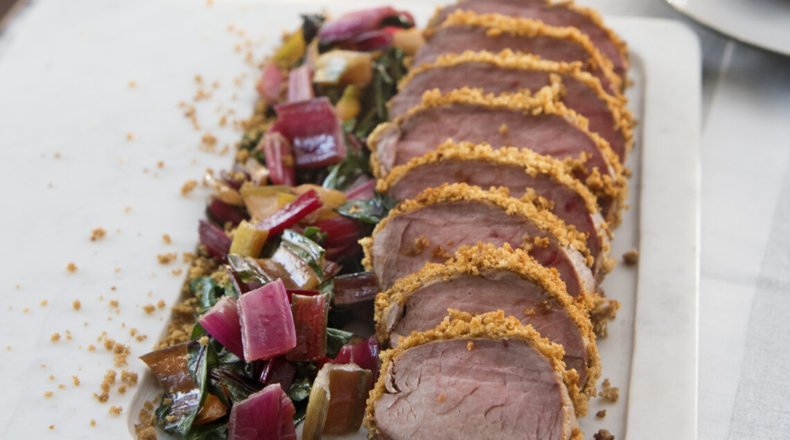 Qualche pennellata di senape e poi i filetti rotolano nella panatura aromatica dai sentori orientaleggianti. Tenerissime fette di carne servite sulla crema dolce di topinambur, un meeting di gusto da provare
