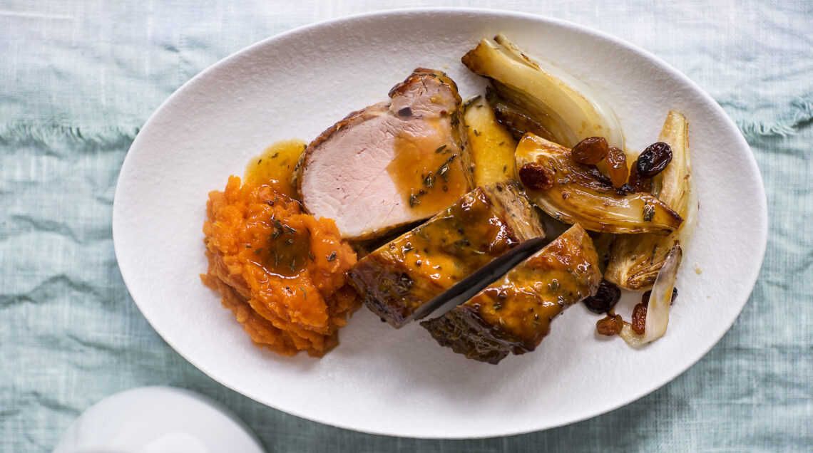 Filetto di maiale arrosto glassato alla senape di Digione e zucchero di canna