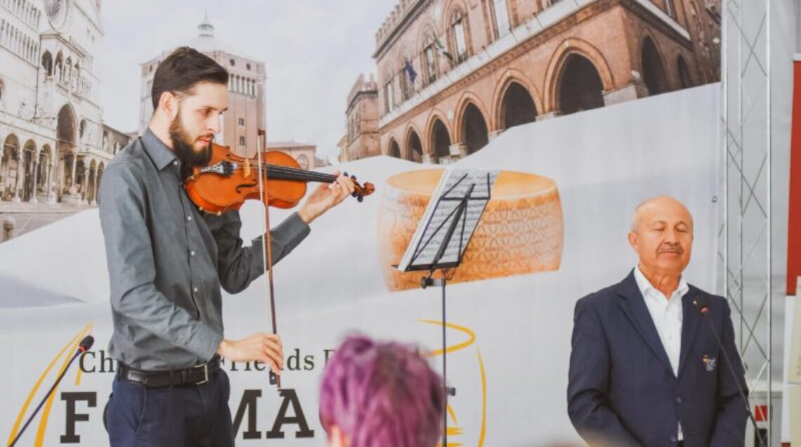 Daniele Bassi, maestro assaggiatore Onaf e tecnico caseario ha abbinato la sua degustazione alla musica, eseguita al violino, di Oleksandr Puzankov, ucraino e naturalizzato cremonese.