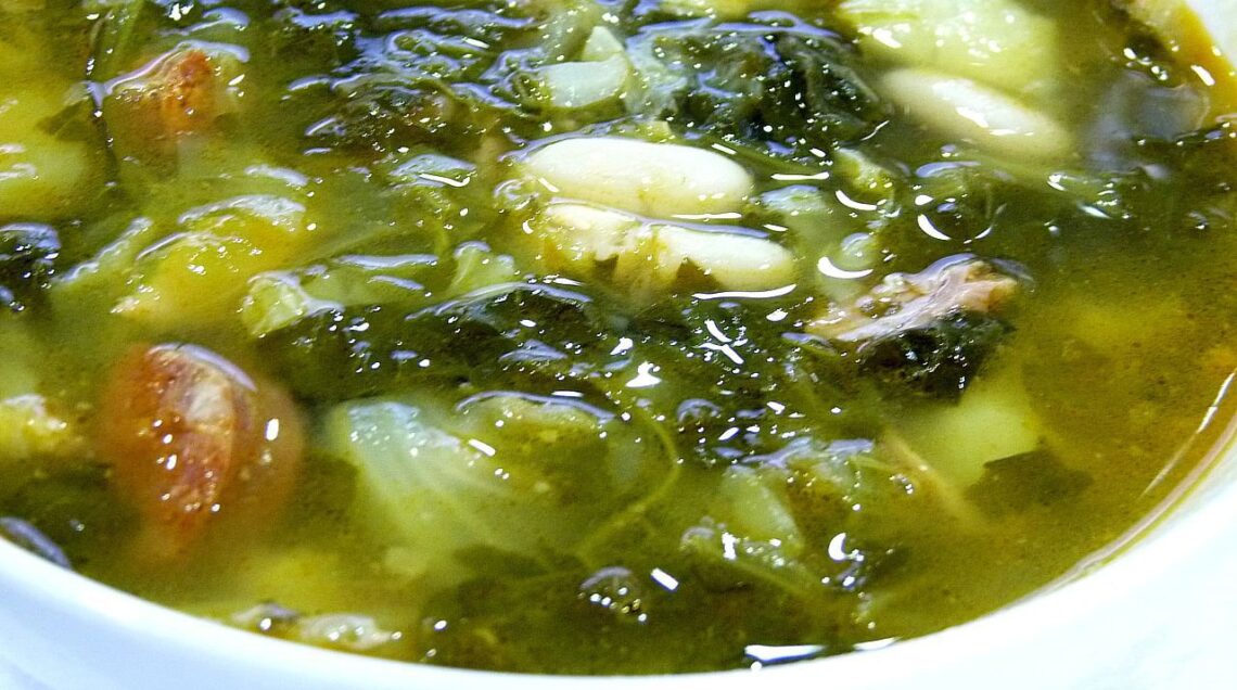 Caldo gálego Le patate di Galizia sono un ingrediente essenziale di molti piatti tradizionali galiziani come il caldo gálego, il brodo alla galiziana, una zuppa sostanziosa e saporita preparata con verdure, navizas (foglie tenere della rapa), bietole, fagioli, verza o cime di rapa, patate e fagioli. A volte si aggiungono osso di prosciutto, pancetta, una costina di maiale o altra carne.