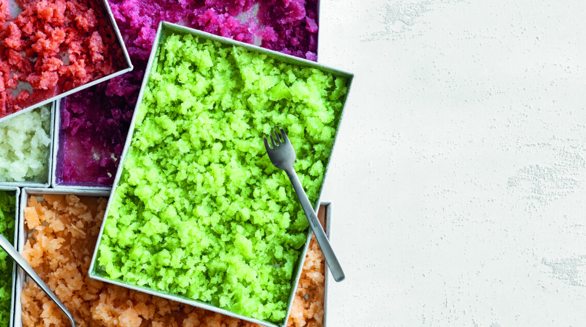 Non è un sorbetto e non è un gelato: regina dei dessert sottozero, la granita avvolge il palato con la sua consistenza unica e impalpabile, regalando alla bocca un'esplosione di freschezza fin dal primo assaggio invitando a farne subito un secondo e poi un terzo. La storia di questa preparazione, simbolo della tradizione siciliana, è legata alla dominazione saracena sull'isola: furono gli arabi a importare lo sherbet, una bevanda ghiacciata aromatizzata con succhi di frutta o acqua di rose. Nel `600 si iniziò a utilizzare la neve raccolta sui monti dell'Etna dai nivaroli e stivata nelle niviere, dove si trasformava in enormi blocchi di ghiaccio. Il ghiaccio veniva poi "grattato", e insaporito con succo di limone e zucchero. L'evoluzione contemporanea di questa delizia ghiacciata nelle regioni del Sud prevede di mescolare la polpa di frutta frullata con uno sciroppo di zucchero e acqua, che non deve mai raggiungere il bollore e va fatto raffreddare completamente prima di incorporarlo. La miscela va poi versata in una teglia di metallo (alluminio o acciaio), in uno strato sottile (solidificherà prima) e messa in freezer per 4-5 ore. Il segreto per ottenere una granita perfetta? Rimescolarla spesso con una forchetta partendo dai bordi verso il centro, in modo da rompere i cristalli di ghiaccio man mano che si formano e ottenere una grana fine e corposa, da gustare a sorsi o a cucchiaiate. Ma vediamo ora le nostre preferite.