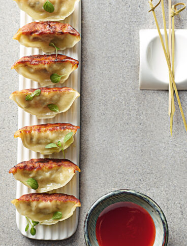 Deliziosi fagottini di morbida pasta, composta da farina e acqua, con un gustoso ripieno di carne (in genere maiale o pollo) e verdure (di solito cipollotti, zenzero, aglio) serviti con salsa di soia, alla quale viene aggiunto aceto di soia e rayu (olio di sesamo piccante). Ecco l’irresistibile mix dei gyoza; il gioco di consistenze, la morbidezza della pasta, le verdure che si amalgamano perfettamente con la carne dando vita a un gusto unico, sono questi gli elementi che rendono i ravioli giapponesi così speciali. Serviti, in genere, in porzioni da sei e/o da otto, nel Paese del Sol Levante si consumano come spuntino negli izakaya (localini caratteristici) sorseggiando una birra o dell’ottimo sakè. In Italia si trovano in genere nei ristoranti di cucina giapponese tradizionale.