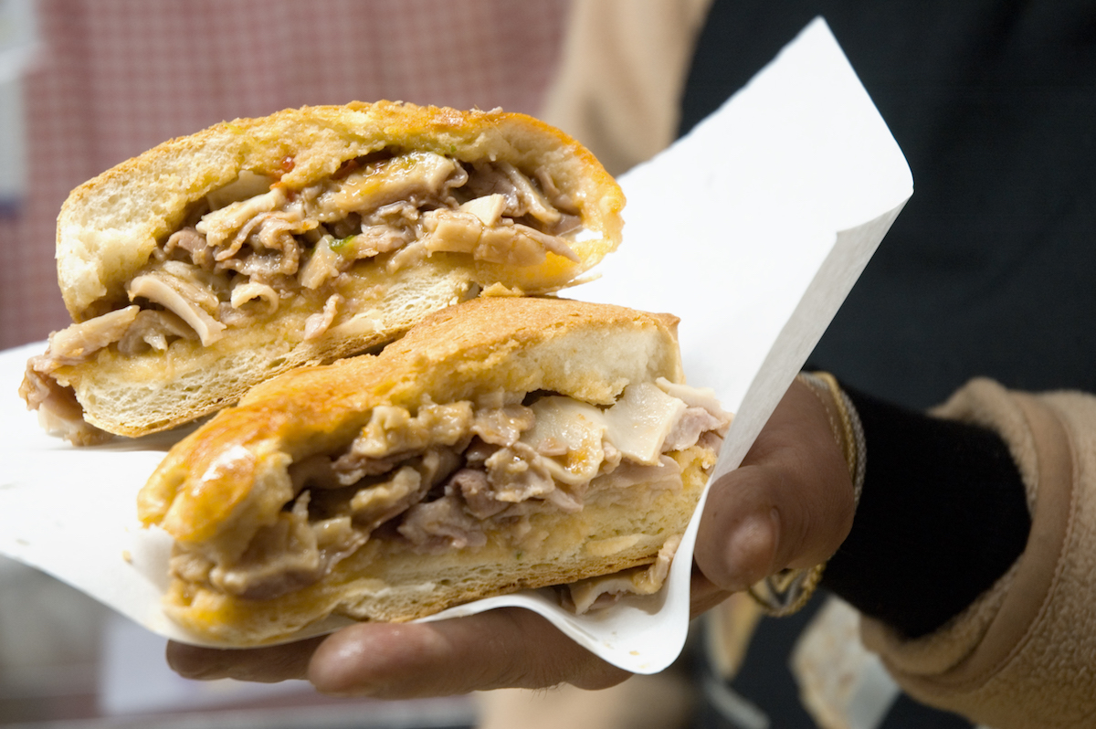 Il cuore della Firenze golosa batte un po’ ovunque tra i vicoli e le piazze medievali ma un concentrato di tutto quanto fa cucina in città si trova al primo piano del Mercato Centrale (ad una manciata di minuti dalla stazione di S.ta Maria Novella). Facile trovare il pane di San Lorenzo (farina semi integrale macinata a pietra e lievito madre nato dalla madre del Vin Santo), le classiche fiorentine, il panino col lampredotto (in foto) gli hamburger di Chianina.