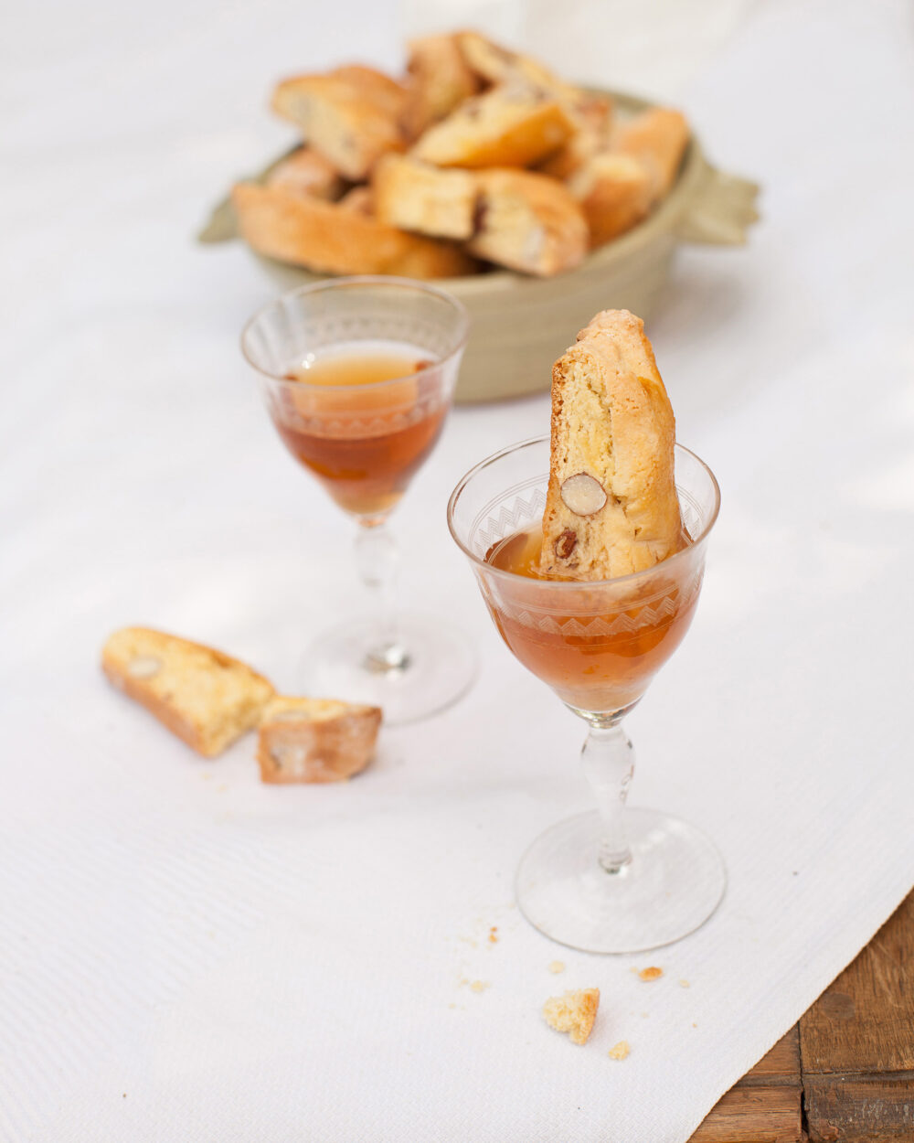 Scesi con i piedi per terra, si cerca, tra i vecchi negozi della piazza San Michele (il vecchio Foro Romano) l’Antica Pasticceria Taddeucci, un’istituzione e un indirizzo prezioso per comprare i cantucci da intingere nel Vin Santo, o il buccellato, la tipica ciambella all’anice con uvette. Che entra nella composizione della golosa zuppa lucchese: una zuppa dolce, fatta proprio con il buccellato ammorbidito nel Vin Santo, con l'aggiunta di crema e fragole aromatizzate al vino.