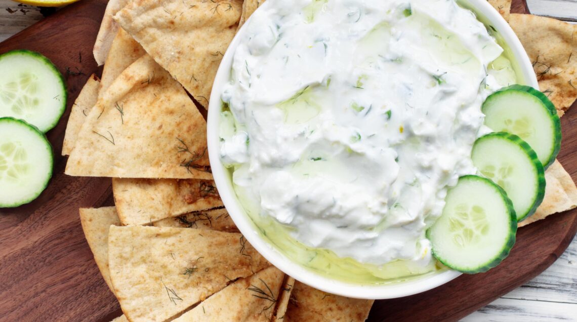 Simile al cacık turco (da cui deriverebbe il nome, anche se alcuni sostengono invece derivi dalla salsa indiana raita) è lo tzatziki greco, una miscela a base di yogurt, cetrioli, aglio e numerose erbe e spezie come aneto, menta o prezzemolo. Solitamente viene servito come condimento ad accompagnare piatti di carne come gyros e souvlaki (foto sotto); come semplice intingolo, o come antipasto. Lo tzatziki viene sempre servito freddo, spesso con il pane pita. Con la sua enorme popolarità, ci sono molte varianti regionali di tzatziki, in paesi come Iran, Iraq, Turchia, Cipro, Bulgaria e Serbia.