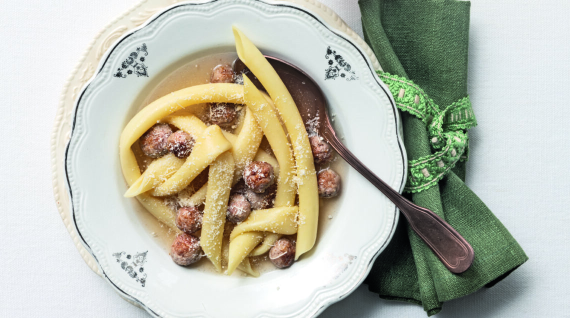 Prevede lunghi maccheroni, un ricco brodo di cappone e altro ancora. Un piatto sontuoso da provare, certamente da ricordare