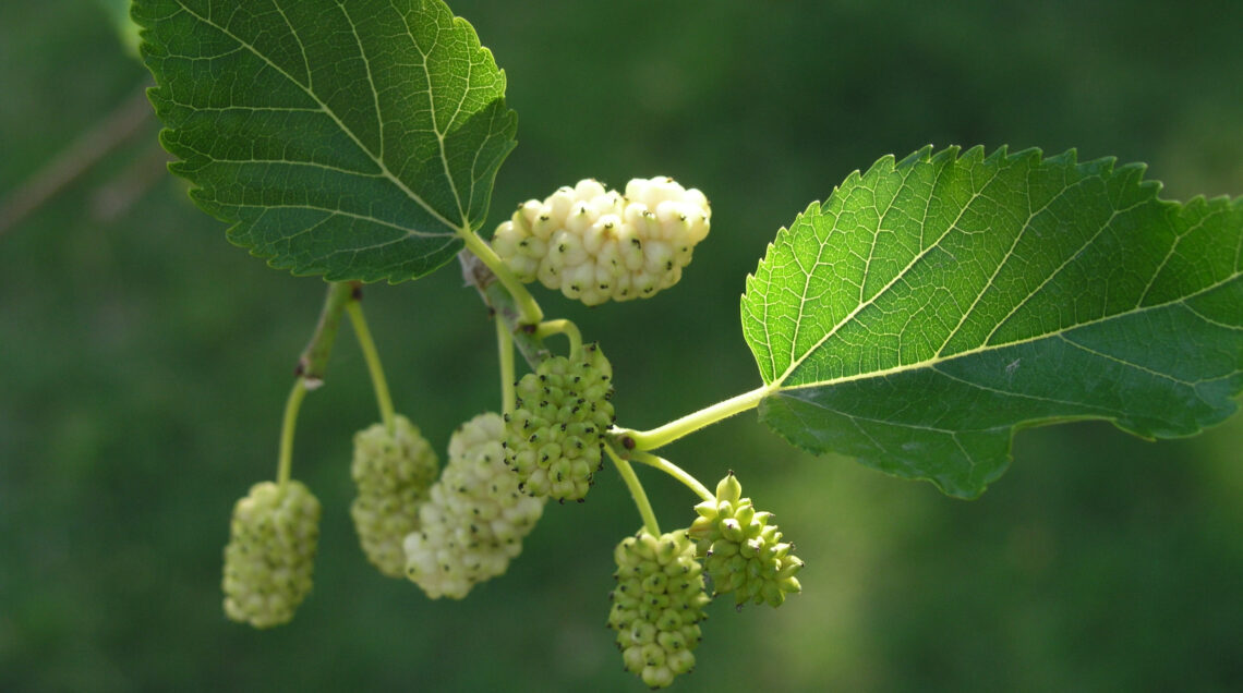 Esiste il gelso bianco (foto sotto) dal colore bianco-giallastro o rosa/viola (da non confondere con la varietà scura). Commestibile, la polpa del gelso bianco è dolciastra con punte acidule anche prima della maturazione, meno saporita del gelso nero. Contengono il 22% di zucchero, che dà loro potere dolcificante. Una volta fermentato, si può ottenere un liquore alcolico.